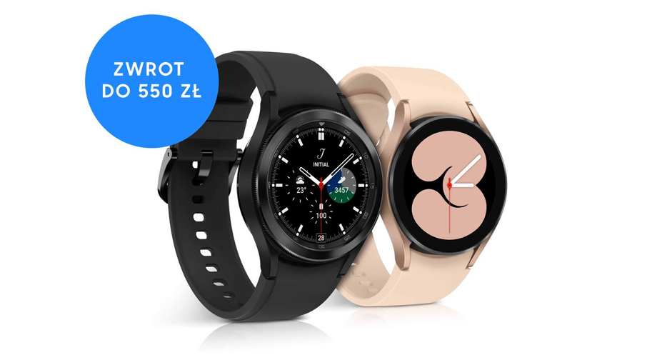 *Promocja trwa od 18.04 do 01.05.2022 r. Zwrot dla Galaxy Watch4 wynosi 400 zł, a dla Galaxy Watch4 Classic - 550 zł. Szczegóły w regulaminie.